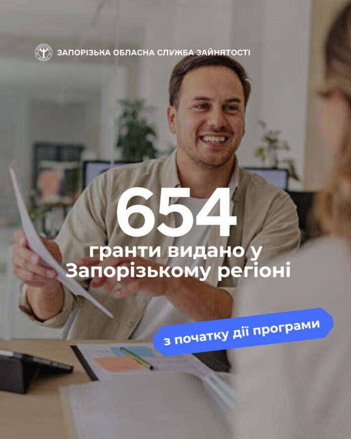 З початку дії програми Запорізькою службою зайнятості видано 654 гранти на загальну суму майже 213 млн грн. Серед отримувачів – 48 учасників бойових дій та їхніх дружин.