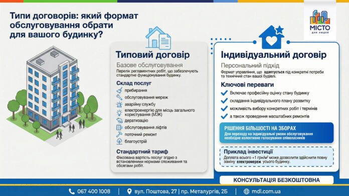 Багато мешканців багатоквартирних будинків замислюються: чому одні будинки мають відремонтовані підʼїзди та оновлені мережі, а інші роками чекають на необхідні роботи? Відповідь часто криється у форматі договору з керуючою компанією. Розповімо детальніше про різні види договорів обслуговування та їхні особливості.