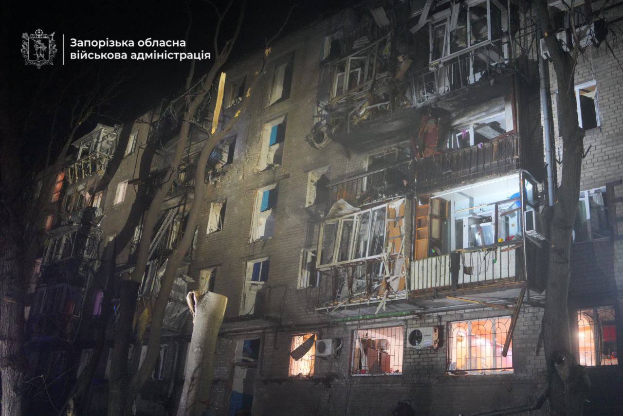 У місті пошкоджено 31 багатоповерхівку та 20 приватних будинків. Також зафіксовано влучання у гуртожиток університету, де на момент атаки перебували люди. Загалом росіяни завдали по Запоріжжю 11 ударів.