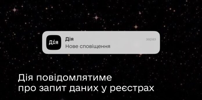 Кожен українець зможе дізнатися, хто і з якою метою переглядав його дані у державних реєстрах. Застосунок «Дія» надсилатиме відповідне сповіщення, повідомили в Міністерстві цифрової трансформації.