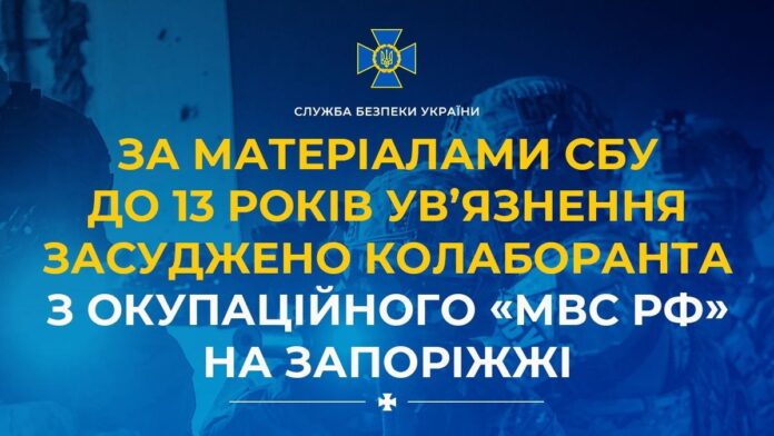 За матеріалами СБУ до 13 років ув’язнення засуджено колаборанта з окупаційного «мвс рф» на Запоріжжі