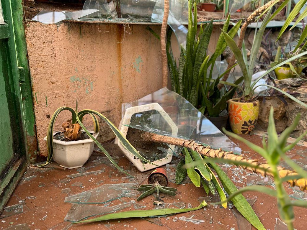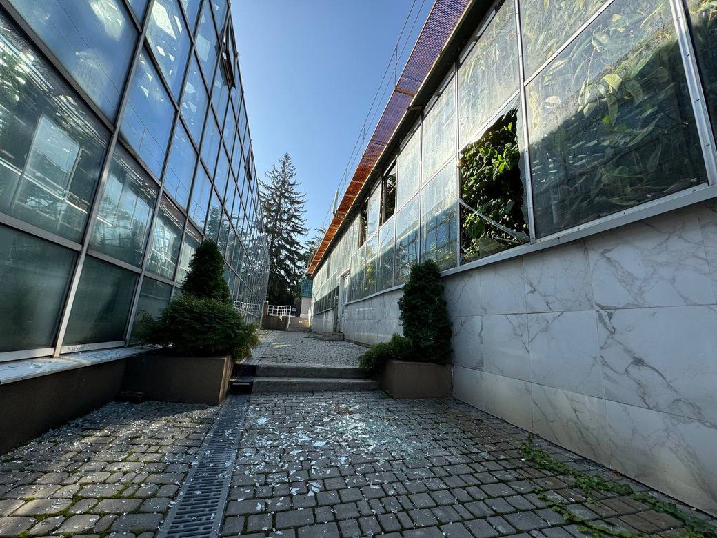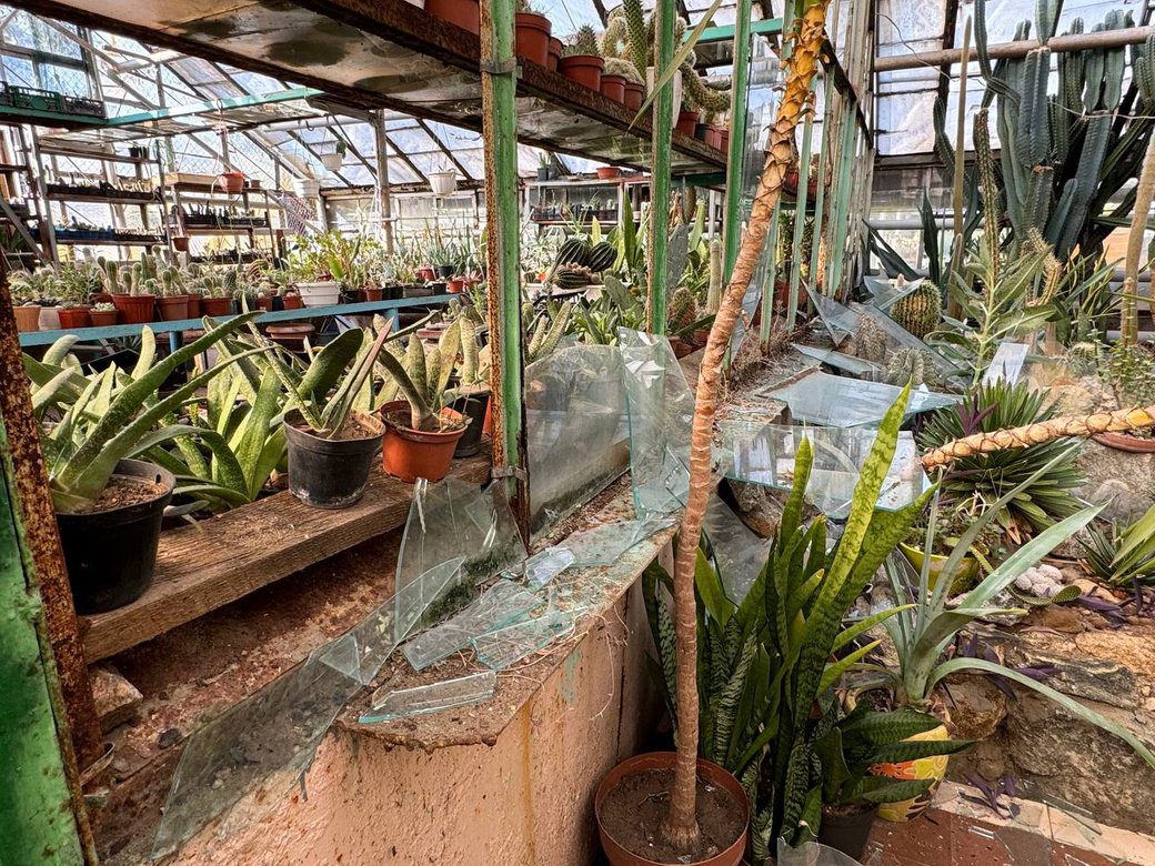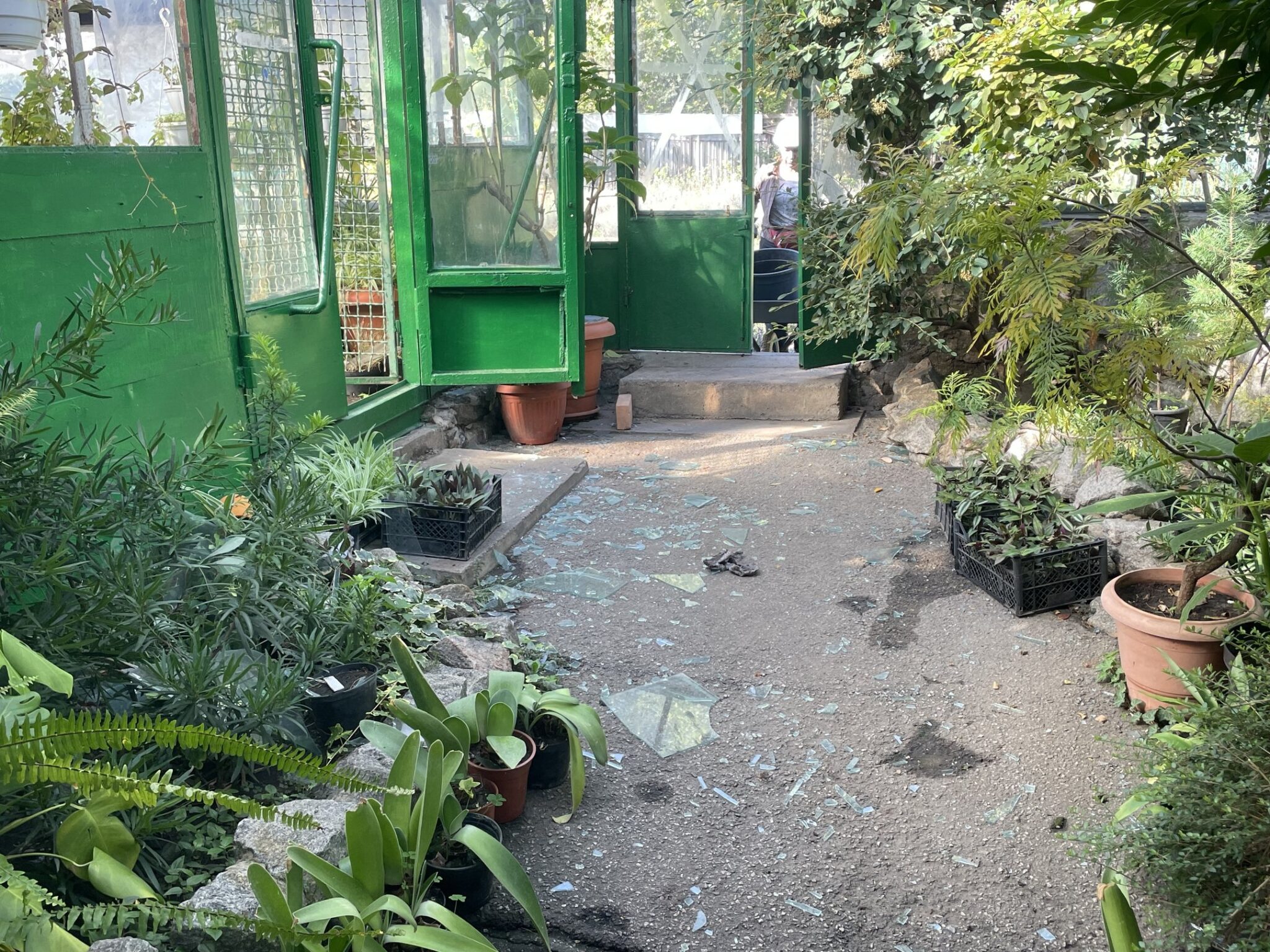 Директорка закладу Тамара Єрьоміна розповіла «Суспільному» про наслідки руйнувань: «Сім вибитих вікон у зимовому саду. У новій оранжереї тільки з тилової сторони вибило двері. Їх вже поставили. У старих теплицях майже всі вікна повипадали. На господарчому подвір’ї також є багато проблем: і вікна повипадали, і двері повідчиняло. В адмінбудівлі тільки двері повідчинялися й повипадали москітні сітки».